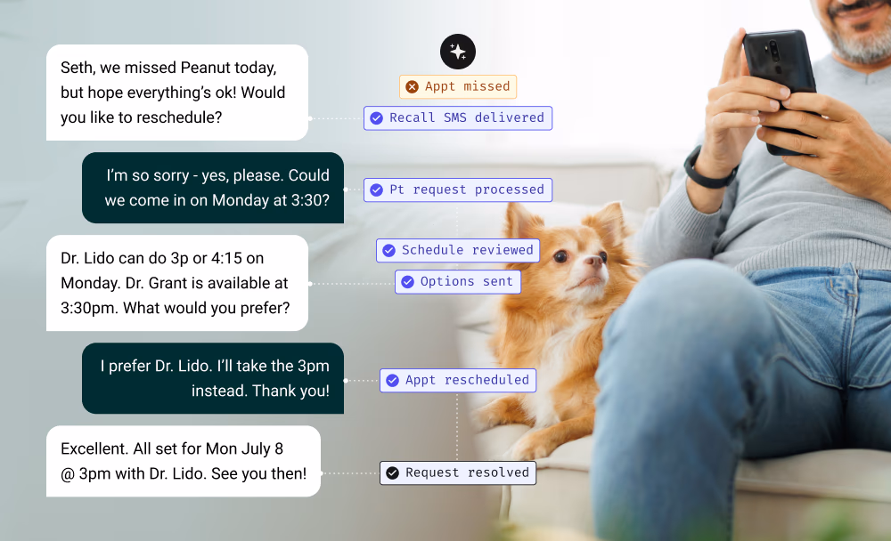Keep pets healthy and owners engaged with friendly nudges for vaccines, annual checkups, and more.